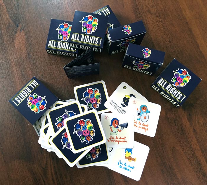 Retrouvez la boite de jeu de l’ACE « All Rights! », un jeu de cartes dédié aux droits de l’enfant, sur notre boutique !